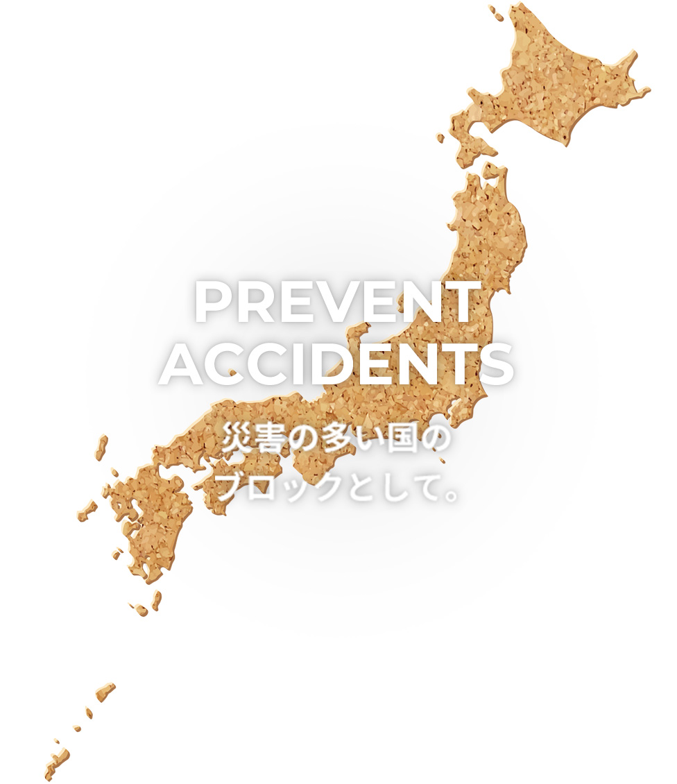 都市型洪水は舗装による地下浸透率の低さが原因と言われています。自然のスピードで雨水が浸透していくことが災害の発生軽減につながります。また都市緑化にも貢献する舗装材も開発。自然界の一員としてのコンクリートブロックを考えています。